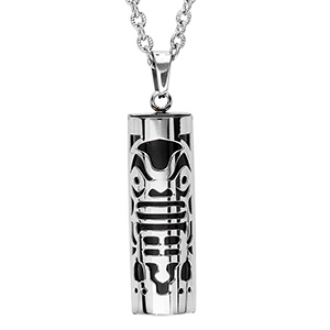 Collier acier pendentif tiki 30mm diamètre 9mm agate noire véritable 50+5cm